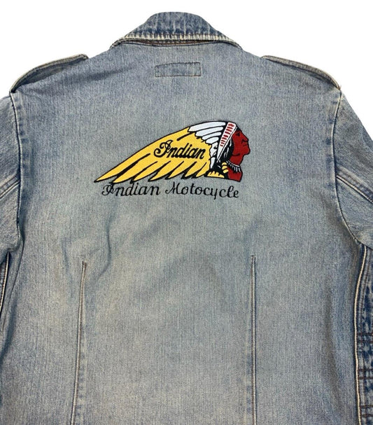 VTG FCUK INDIAN MOTORCYCLES EMBROIDERED DENIM JACKET BIKER CHIEF SCOUT M 40