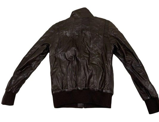 VTG BROWN ZIP DIESEL LEATHER BOMBER JACKET SIZE S 38"