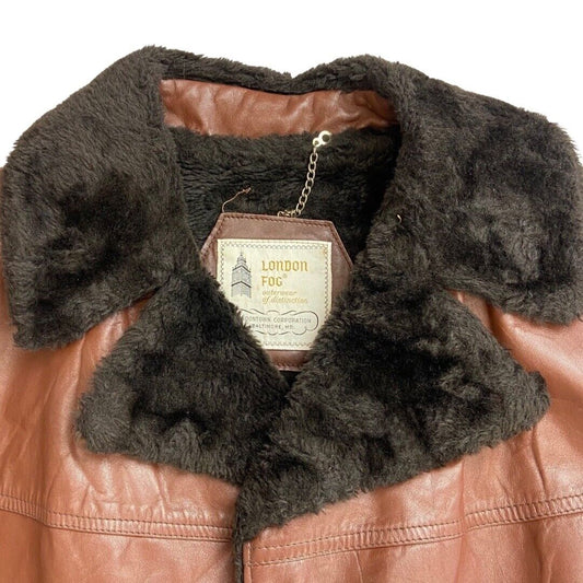 VTG 70s USA MENS LONDON FOG BROWN NAPPA LEATHER SHERPA COLLAR CAR COAT 42” L