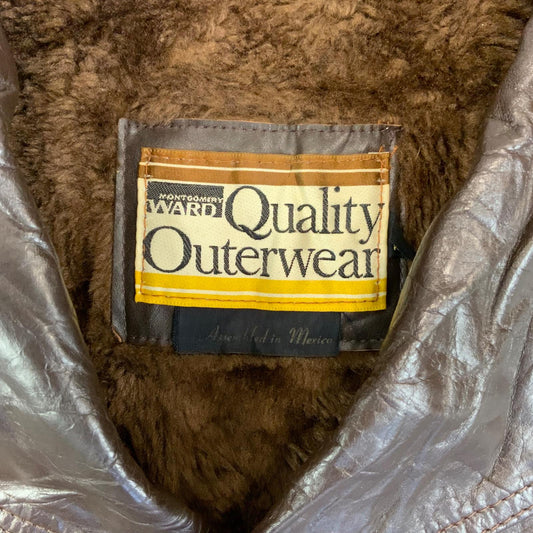 VTG 70s MONTGOMERY WARD SHERPA LINED BROWN LEATHER WESTERN JACKET COAT MOD 40” M