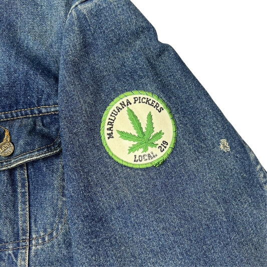 VTG 80S LEE STORM RIDER LINED DENIM JACKET V RARE 70s MARIJUANA PATCH L 42”