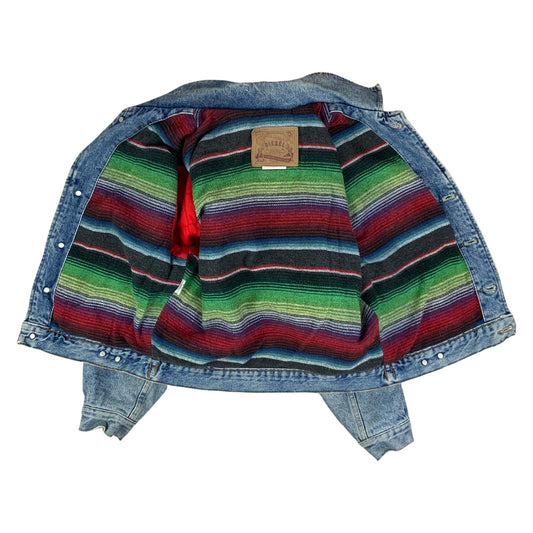 VTG 90s LADIES ITALIAN DIESEL MEXICAN SERAPE BLANKET LINED DENIM JACKET sz12 34”