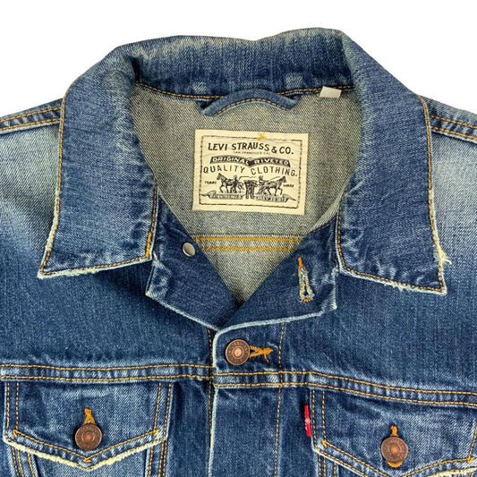 LTD EDTN LEVIS CHAINSTITCH EMBROIDERED TYPE 3 TRUCKER DENIM JACKET XS 34”