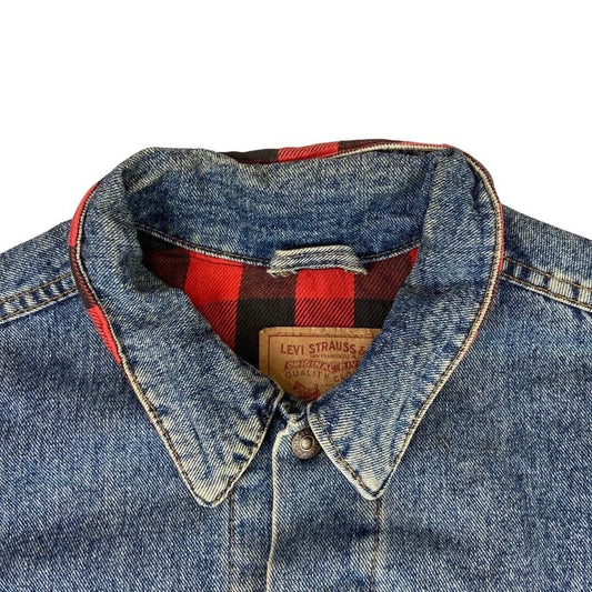 VTG 80s USA LEVIS HARLEY DAVIDSON PATCH FLANNEL LINED TYPE 3 DENIM JACKET 47” XL