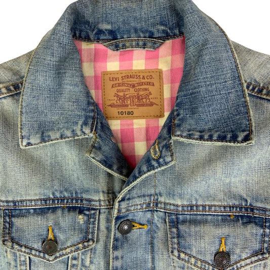 VTG LEVIS 10180 PINK FLANNEL LINED TYPE 3 TRUCKER DENIM JACKET 36” S