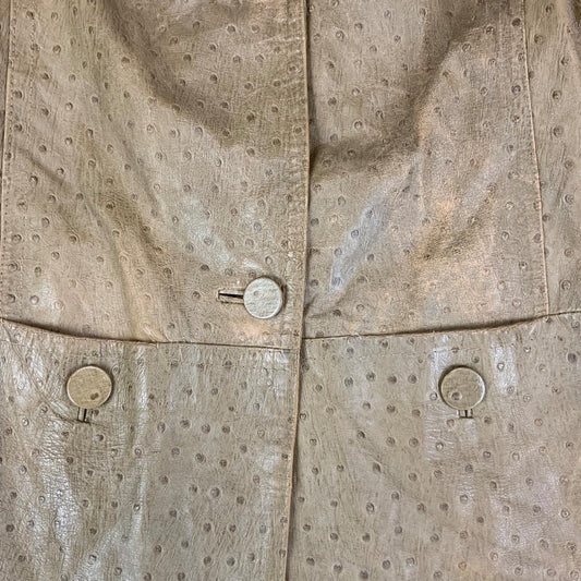 RARE VTG 1960s LADIES OSTRICH SKIN LEATHER COAT GREEN BEIGE MOD VGC SIZE 12 - 14