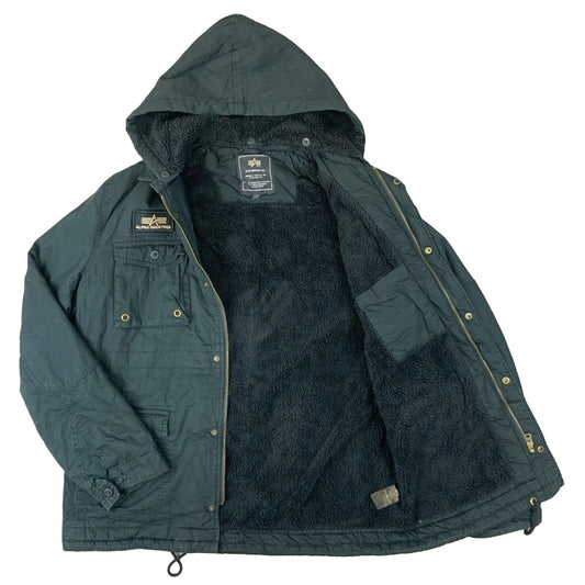 VTG MENS BLACK ALPHA INDUSTRIES FLEECE LINED COTTON PARKA COAT MILITARY XL 46”