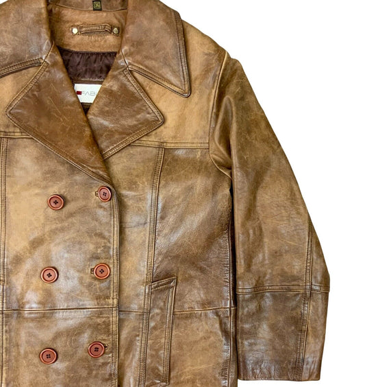VTG 90s ITALIAN FABIANI SOFT LEATHER DOUBLE BREASTED JACKET COAT LINED SMALL 36”
