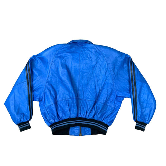 VTG 1980S BRIGHT BLUE SOFT LAMBSKIN LEATHER VARSITY STYLE BOMBER JACKET L 44