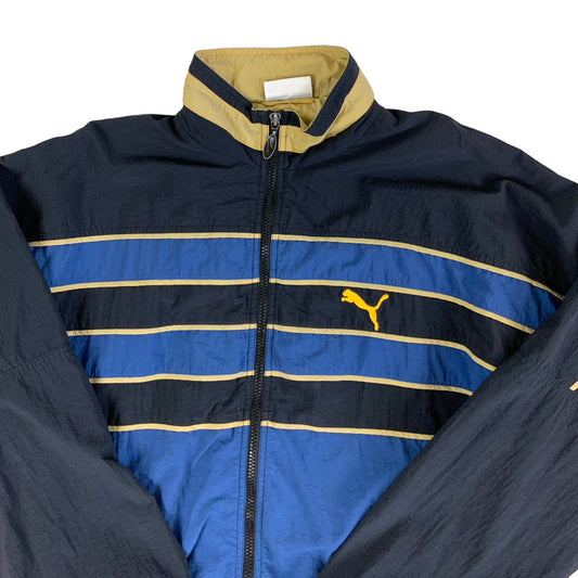 Vintage 80s 90s Puma Blue Black Yellow Stripe Bomber Windbreaker Jacket L XL