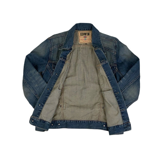 Vintage 90s ‘Edwin’ Blue Distressed Trucker Denim Jacket M