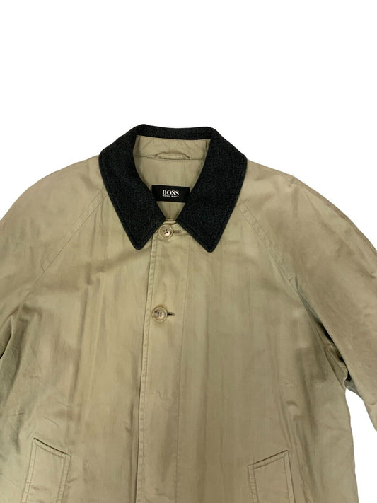VTG 90s HUGO BOSS BIEGE KHAKI PADDED TRENCH COAT MAC SIZE XL