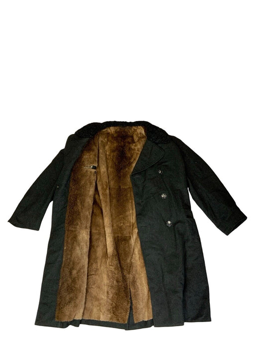 VTG 80s BLACK DOUBLE BREASTED HEAVYWEIGHT SHERPA WOOL DUSTER COAT SIZE XL