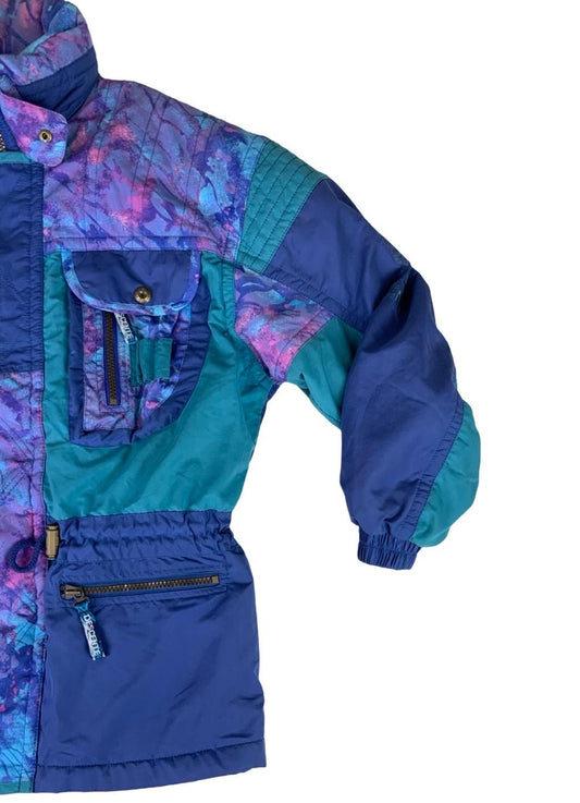 VTG 80s 90s DESCENTE BLUE PURPLE RETRO PRINTED SKI JACKET SIZE L