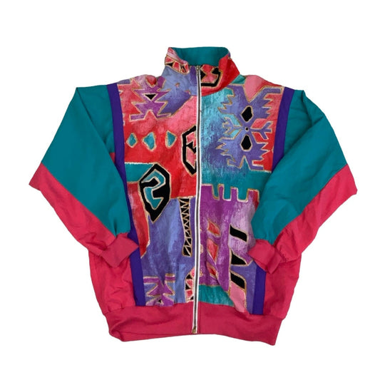 Vintage 80s 90s ‘Silver Threads’ Green Pink Purple Crazy Patterned Windbreaker Bomber Jacket M L