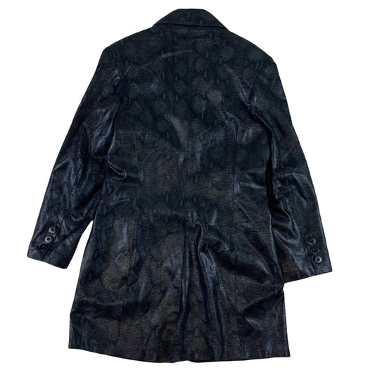 Vintage Black Leather Double Breasted Long Leather Coat 10 12