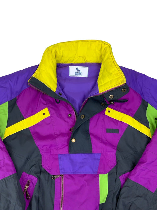 80s 90s Purple Green Pink Yellow 'Rodeo' Pull-Over Ski Outdoor Coat Jacket L XL