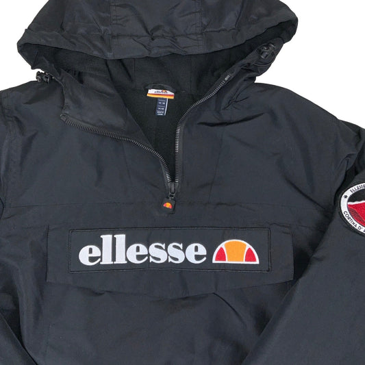 Vintage 90s ‘Ellesse’ Black Pull-Over Spell-Out Windbreaker Coat M L XL