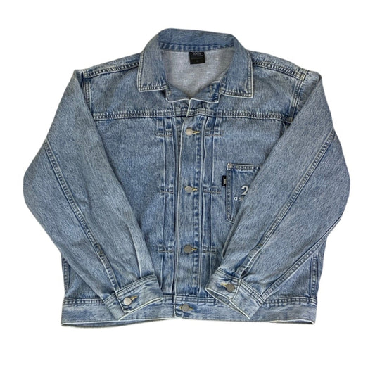2001 RARE Kubrick Space Odyssey Light Blue Distressed Denim Jacket L XL