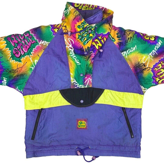 Vintage 80s 90 Purple Extremely Rare The Wild Style Zip Down Graffiti Jacket XL