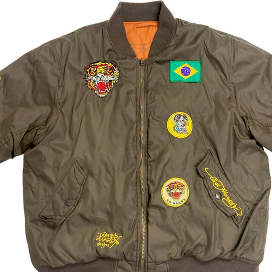 Vintage Y2K Khaki Orange Reversible Ed Hardy Bomber Jacket XL