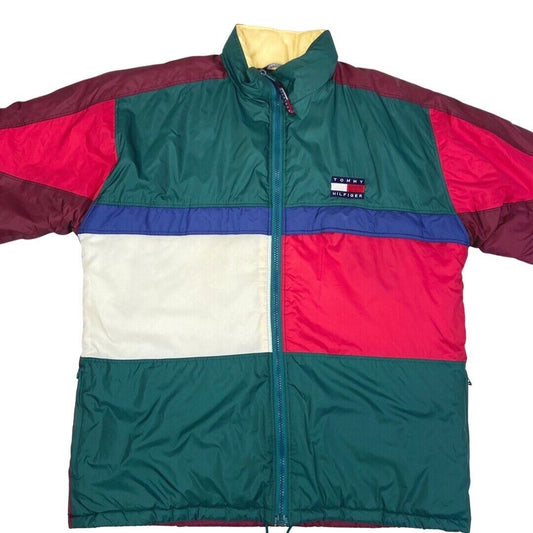 Vintage 90s Red Green Tommy Hilfiger Embroidered Puffa Coat XXL
