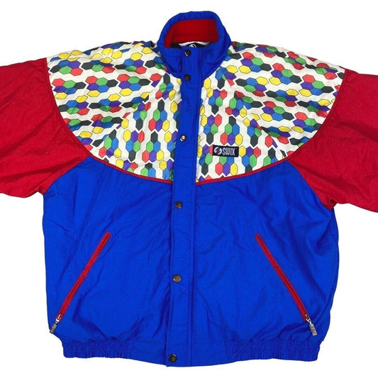 Vintage 80s Red Blue Patterned Ski Bomber Jacket XL