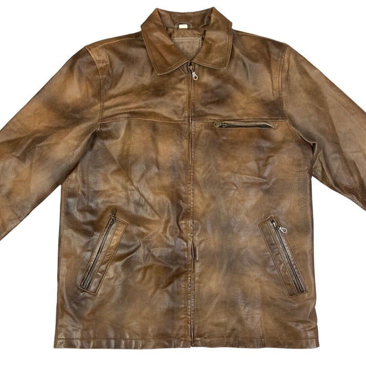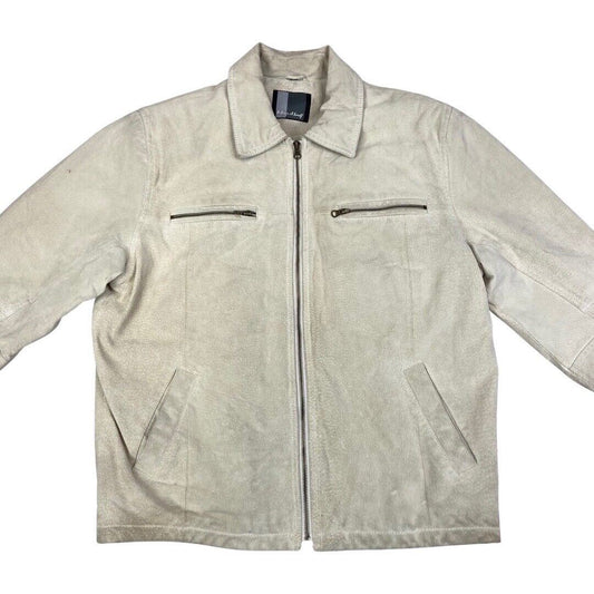 Vintage 90s Cream Leather Zip Down Jacket XL