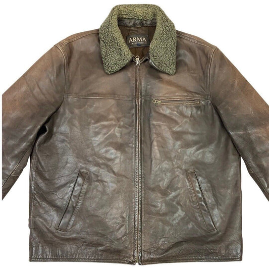 Vintage 90s Brown Leather Zip Down Shearling Collar Aviator Jacket XL