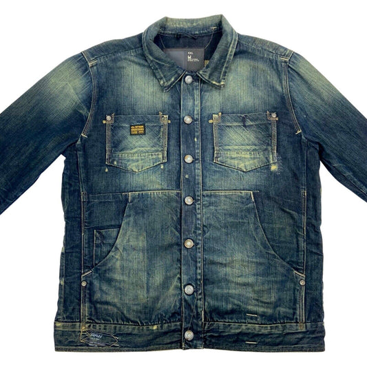Vintage Y2K Blue Distressed Acid Wash G-Star Denim Jacket L
