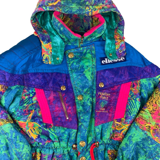 Vintage 90s Ellesse Hooded Crazy Pattern Ski Jacket M L