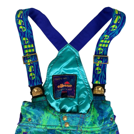 Vintage 90s Ellesse Bright Pattern Ski Trousers Salopettes Overalls 10 12 XS S