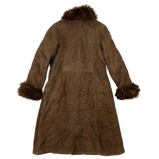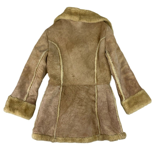 Vintage Sheepskin Brown Pink Faux Suede Shearling Style Coat 10 12 14