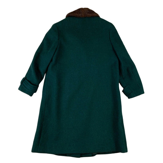 Vintage Green Wool Tassel Collar Long Coat 14 16
