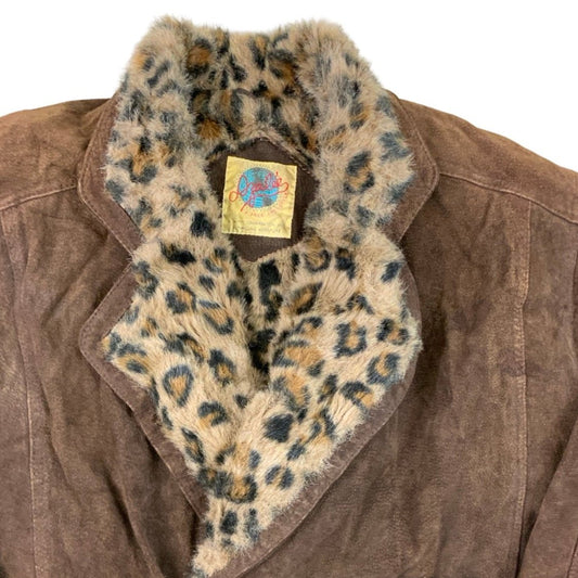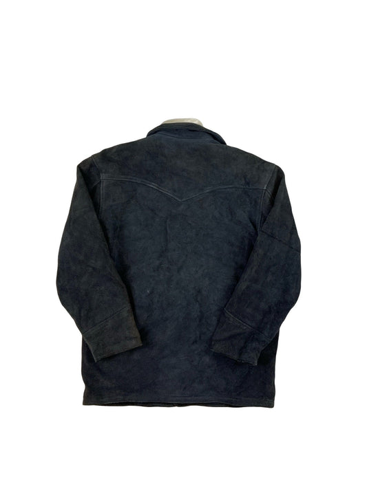 Vintage Dark Navy Leather Fleece Lined Coat M L