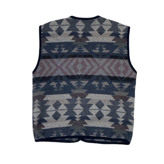 Vintage Grey Blue Black Aztec Wool Waistcoat S M