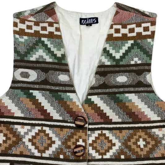 Vintage 'Mills' Green Cream Brown Tapestry Waistcoat S 10 12