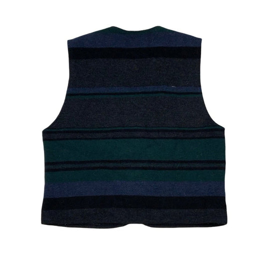 Vintage Blue Black Grey Green Striped Wool Waistcoat M L 16 18