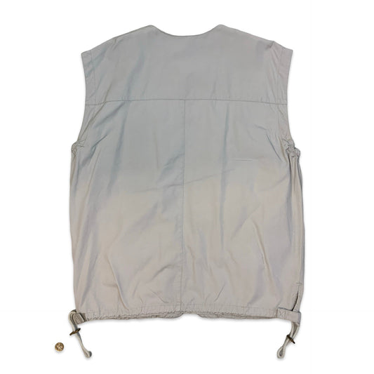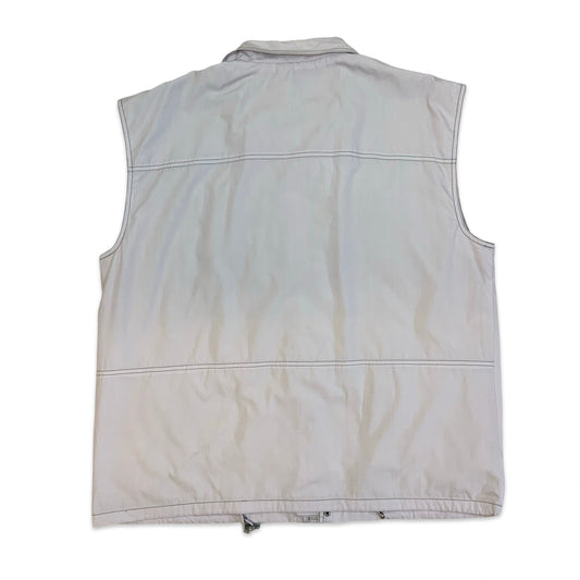 Y2K Off White with Grey Top Stitch Utility Cargo Waistcoat Vest XL XXL