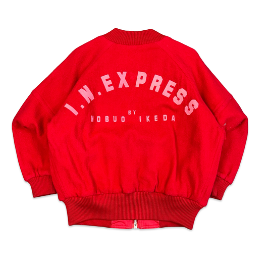Vintage I. N. Express by Nobuo Ikeda Red Wool Varsity Bomber Jacket M