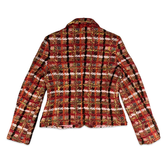 Vintage Red Black & White Checked Bouclé Coat 10 12
