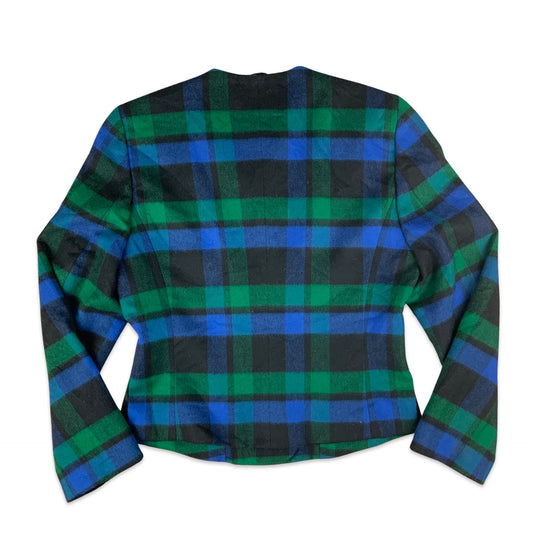 Vintage Blue Black & Green Plaid Wool Coat 8 10