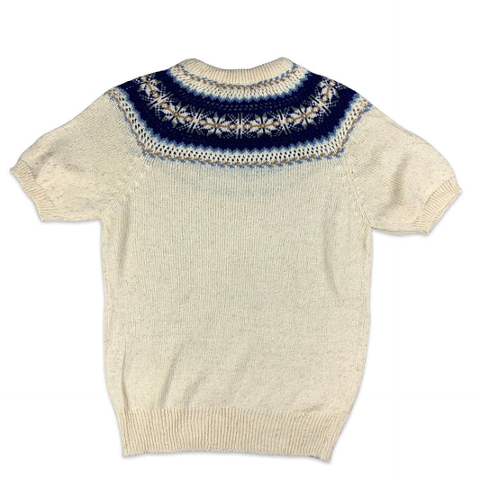 White & Navy Snowflake Knit Short Sleeve Jumper 10 12