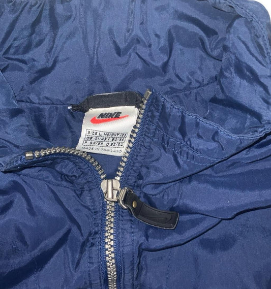 VTG 90S NIKE BLUE WHITE STRIPED RETRO WINDBREAKER JACKET LARGE