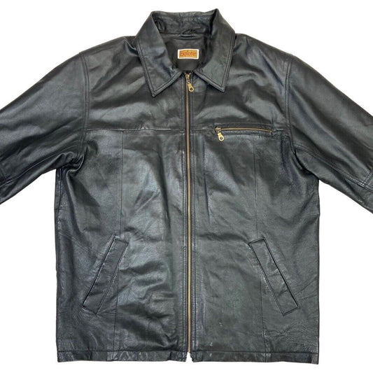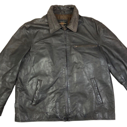 Vintage 90s Dark Brown Leather Zip Down Jacket XL