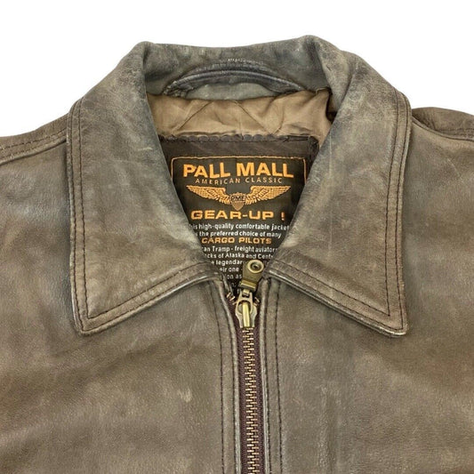 Vintage 90s Brown Leather Zip Down Pall Mall Embroidered Pilot Jacket XL