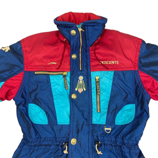 Vintage 90s Blue Red Descente Embroidered Dream Catcher Ski Jacket L