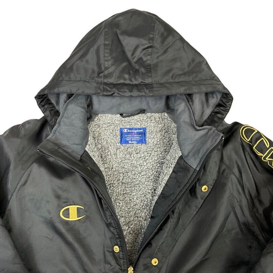 Vintage 90s Black Gold Embroidered Champion Longline Coat L
