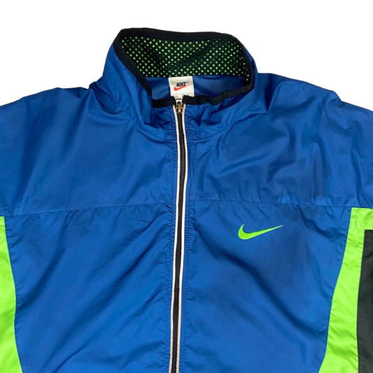 Vintage 90s Blue Black Green Nike Embroidered Windbreaker XL