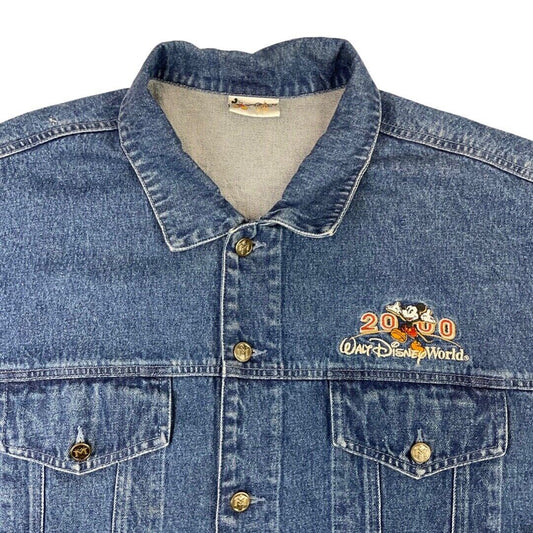 Vintage 2000s Y2K Blue Embroidered Disney World Mickey Denim Jacket XXL
